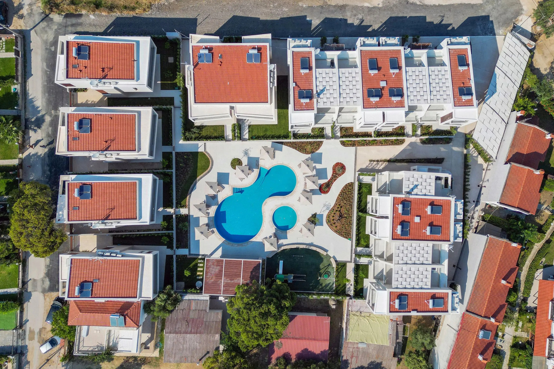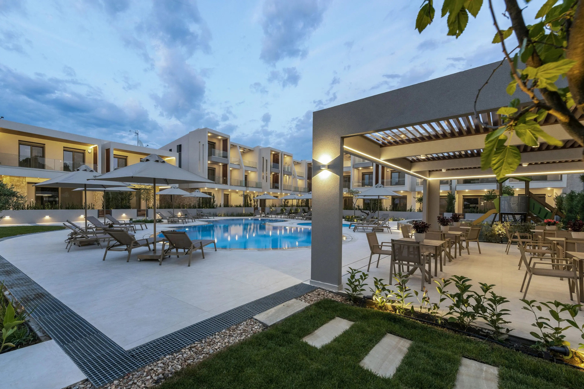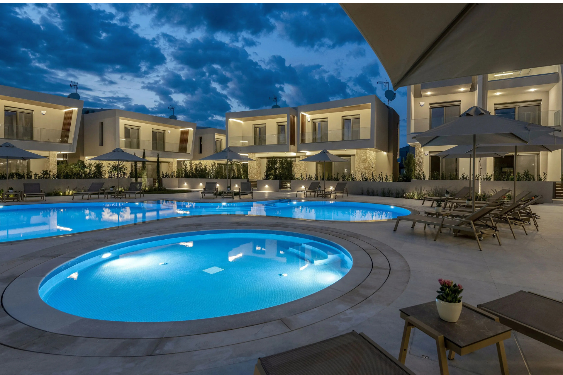 Enjoy the pool with sun loungers, as well as the outdoor terrace and balcony overlooking the garden — the perfect setting for morning coffee, sunbathing or evening drinks.